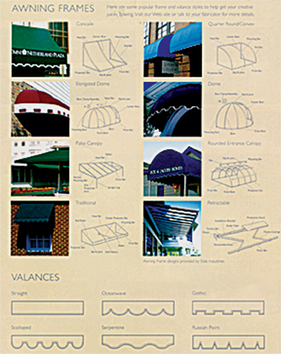 SOME POPULAR AWNING SHAPES AND VALENCE DESIGNS: